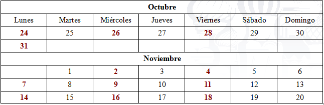 El curso inicia el 24 de Octubre y finaliza el 18 de Noviembre del 2016
