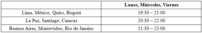 Lunes, Miércoles y Viernes, son 12 sesiones de dos horas académicas cada una (24 horas en total) señaladas en rojo en el calendario.