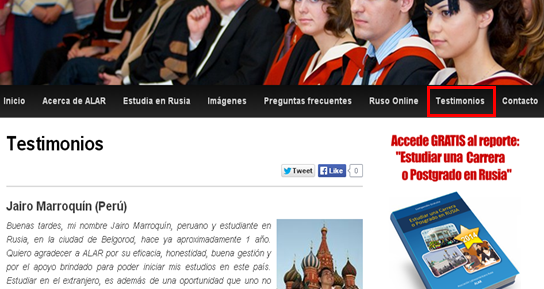 Les informamos a todos nuestros lectores que hemos implementado una nueva sección en el blog llamada «testimonios» en donde podrán acceder a diferentes testimonios de estudiantes latinoamericanos en Rusia, en la parte final de esta sección hay un enlace que conduce a la categoría de testimonios (los cuales por lo general son entrevistas).