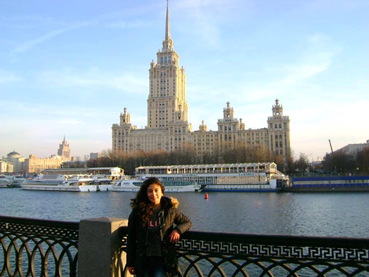 Angella Mahealany Farfán (de Cuzco, Perú), en las orillas del río Moscova en Moscú. Octubre 2014