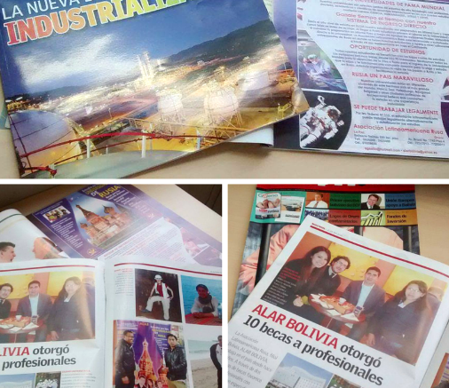La labor de los Directores de ALAR, la Lic.Lourdes Flores Romay y el Lic.Juan José Capriles Márquez, va más allá de la difusión de las grandes oportunidades que Rusia ofrece pues con gran esfuerzo el año pasado han logrado concretar el otorgamiento de 10 Becas Académicas 100% a profesionales bolivianos para estudios de Maestrías en prestigiosas Universidades Rusas como la Universidad Lobachévskiy de Nizhnii Nóvgorod (UNN), la Universidad Aeroespacial de Samara (SGAU) y la Universidad Federal de Kazán KFU.