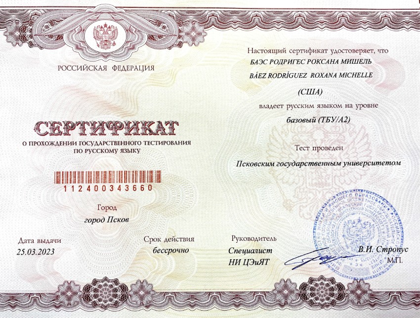 ¿Qué importante es la Certificación Oficial de Ruso que recibiste de ALAR?