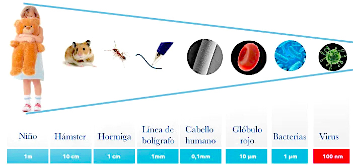 Toda material que mida como máximo 100 nanómetros resulta ser un nanomaterial. Su tamaño máximo equivale a la de un virus.