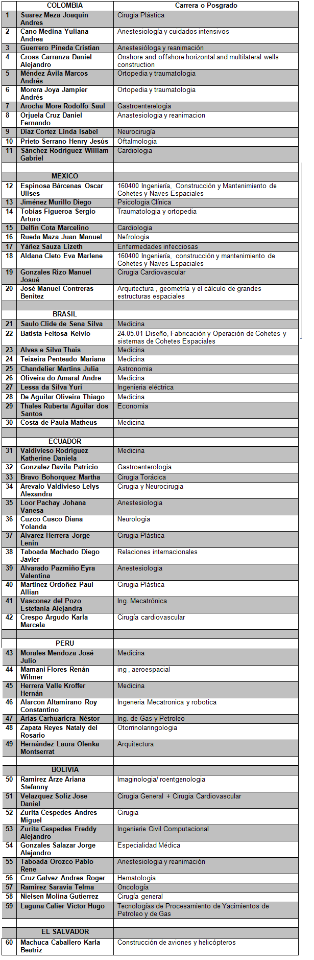 Estudiantes que viajarán a Rusia en Enero 2016 (programa costos reducidos)