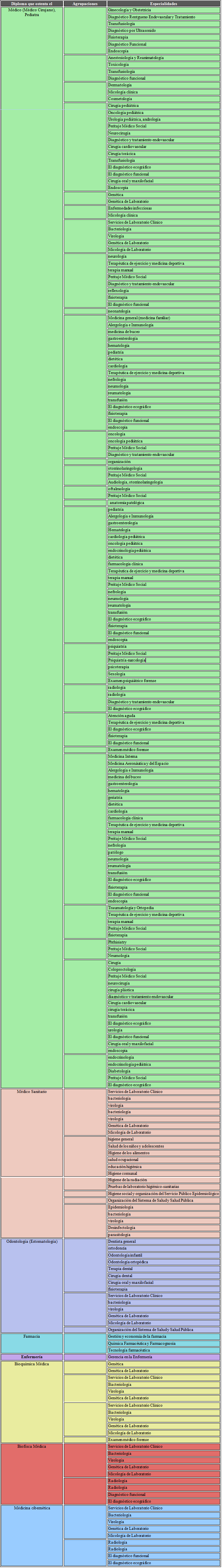 Tabla de postgrados en medicina en Rusia